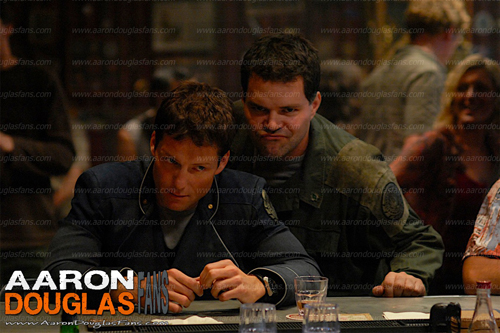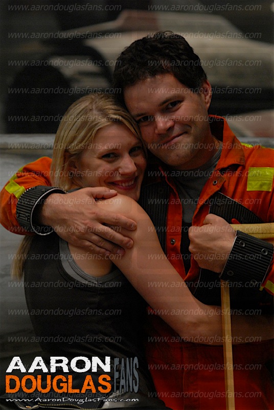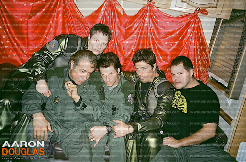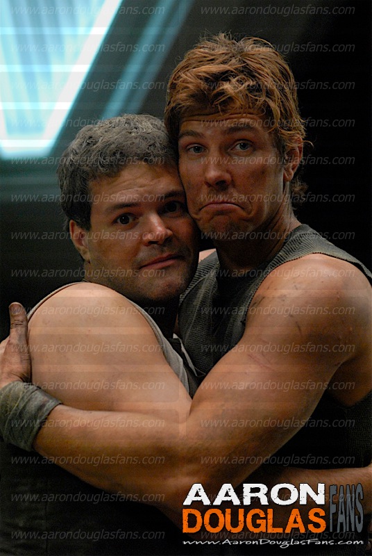 On March 18, 2012, Aaron was invited to participate in the filming of the music video for Don’t Stop Me Now by the band Young Beautiful in a Hurry. Lead vocalist and guitarists for YBIAH is Brendan McCreary, the brother of Bear McCreary who did the music for BSG. And Brendan, as we all know sung the vocals on “All Along the Watchtower” on the BSG version of the song. Below is some photos of Aaron I snagged from twitter and facebook.